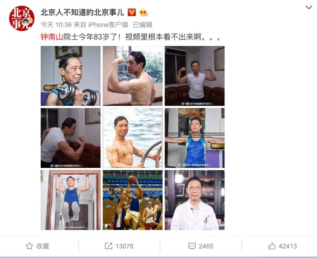 钟南山院士的这组健身照一度走红网络,引无数网友疯狂点赞。